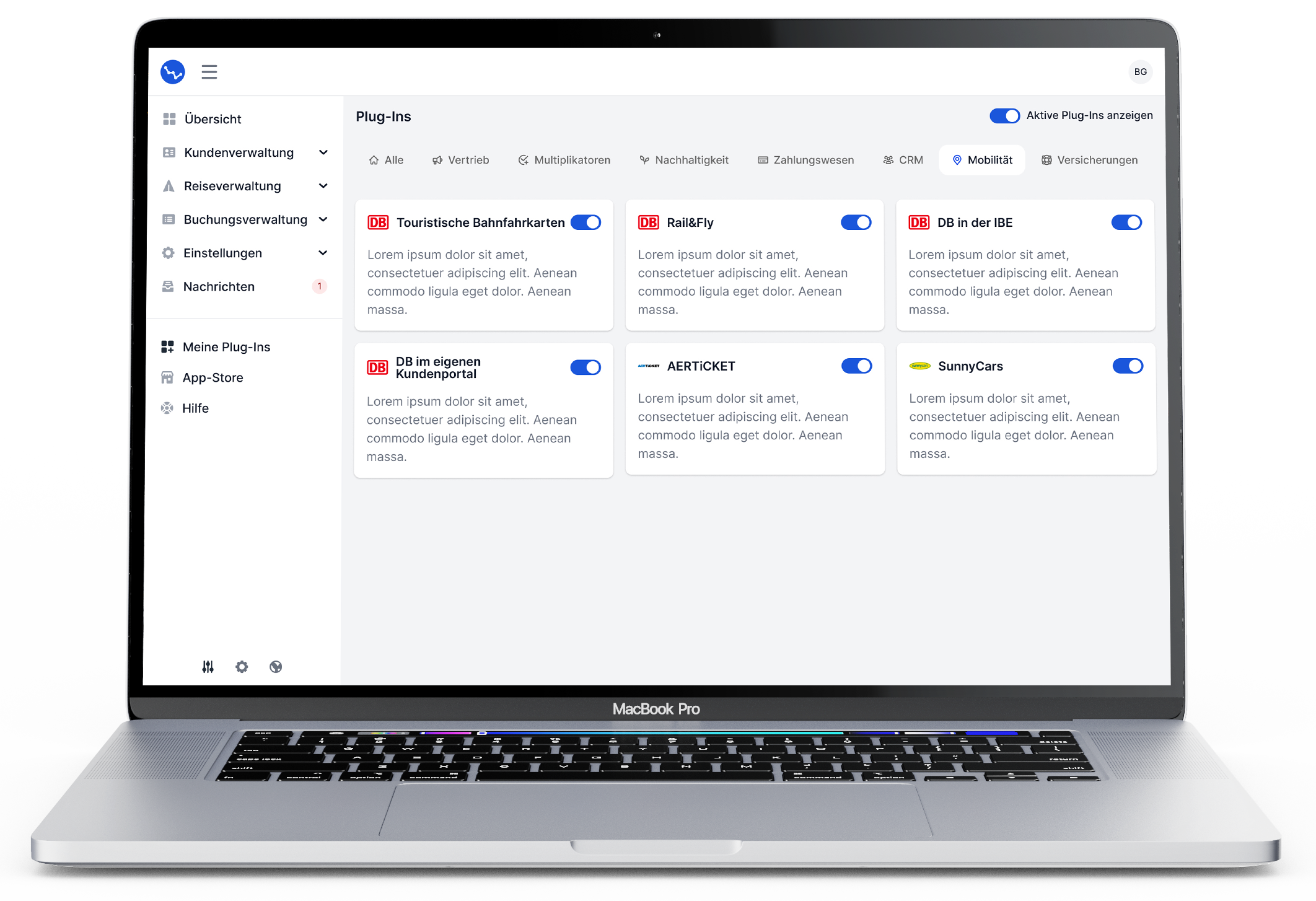 Kassiopeia verbindet dein Fundament mit den besten Bausteinen am Markt. Über Plug-ins dockst du Vertrieb, Payment, Versicherungen, Mobilität und mehr an.